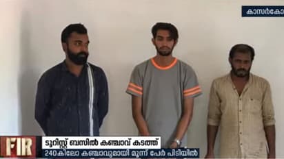 കാസർകോട്: ടൂറിസ്റ്റ് ബസിൽ കടത്തുകയായിരുന്ന 240 കിലോ കഞ്ചാവുമായി മൂന്ന് പേർ പിടിയിൽ.ബസ് ഉടമയുടെ മകനു ഡ്രൈവറുമടക്കം മൂന്ന് പേരാണ് പിടിയിലായത്. കാസർകോട് സ്വദേശിയും ബസ് ഡ്രൈവറുമായ മുഹമ്മദ് ഹനീഫ,പെരിയാട്ടടുക്കം സ്വദേശി മൊയ്തീൻ കുഞ്ഞി,ബസുടമയുടെ മകനും ചെങ്കള സ്വദേശിയുമായ മുഹമ്മദ് റയിംസ് എന്നിവരാണ് കാസർകോട് ഡിവൈഎസ്പിയുടെ നേതൃത്വത്തിലുള്ള പൊലീസ് സംഘത്തിന്റെ പിടിയിലായത്.