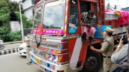 പിന്നീട് വാഹനം കടത്തിവിട്ടു. ലോറി പോകുന്നതിനിടയില് എല്ദോ അസഭ്യം പറഞ്ഞെന്നാണ് പൊലീസ് പറയുന്നത്. ഇതേ തുടര്ന്ന് എല്ദോയെ പൊലീസ് ലോറിയില് നിന്ന് ബലമായി ഇറക്കി പോലീസ് സ്റ്റേഷനിലേക്ക് കൊണ്ടുപോയി.റോഡില്വച്ച് മര്ദ്ദിച്ചെന്നും സ്റ്റേഷനില് മുട്ടുകുത്തി നിര്ത്തിച്ചെന്നും ലോറി ഉടമകള് പരാതിപെട്ടു.