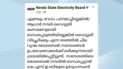 കണ്ണൂര് സ്വദേശിയായ റിട്ട ബാങ്ക് മാനേജര്ക്ക് ഒരു ലക്ഷത്തോളം രൂപയാണ് നശ്ടപ്പെട്ടത്. ഉപഭോക്താക്കളുടെ താൽപര്യംസംരക്ഷിക്കുന്നതിന്റെ ഭാഗമായാണ് കെഎസ്ഇബി പൊലീസില് പരാതി നല്കിയത്. ഛത്തീസ്ഗഡിലുള്ള സംഘമാണ് കെഎസ്ഇബി ഉപഭോക്താക്കളുടെ പണം തട്ടുന്നതെന്നാണ് പ്രാഥമിക വിലയിരുത്തല്. വ്യാജ സന്ദേശങ്ങളോട് ഉഫഭോക്താക്കള് യാതൊരു കാരണവശാലും പ്രതികരിക്കരുതെന്ന് കെഎസ്ഇബി ആവശ്യപ്പെട്ടു.