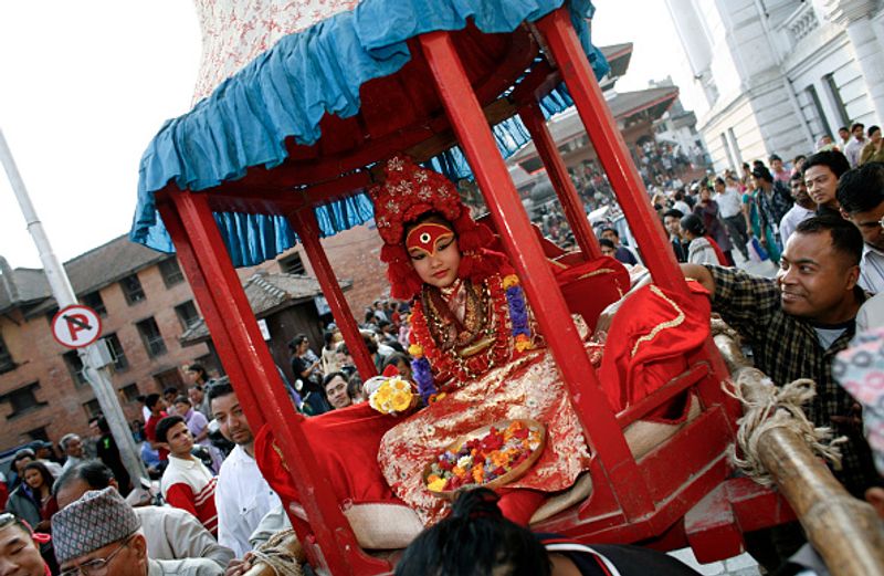 കാഠ്മണ്ഡുവിലെ റോയല് കുമാരികളെ ജീവിച്ചിരിക്കുന്ന ദേവതകളായിട്ടാണ് അറിയപ്പെടുന്നത്. ഓരോ സമുദായത്തിനും ഇവിടെ അവരുടേതായ കുമാരിമാരുണ്ട്. പല സമുദായങ്ങളിലും ഈ കുമാരി സമ്പ്രദായം നിലനിൽക്കുന്നുമുണ്ട്. നൂറ്റാണ്ട് തന്നെ പഴക്കമുള്ളതാണ് കാഠ്മണ്ഡുവിലെ ഈ കുമാരി സമ്പ്രദായം. ഇങ്ങനെ പെണ്കുഞ്ഞുങ്ങളെ ദേവതകളായി വാഴിക്കുന്നതിലൂടെ ഭാഗ്യം കടന്നുവരുമെന്നാണ് ഇവര് വിശ്വസിക്കുന്നത്. ഹിന്ദുക്കളും ബുദ്ധമത വിശ്വാസികളും ഈ കുമാരിമാരെ ആരാധിക്കുന്നു. ദൈവമായിത്തന്നെയാണ് ഇവരെ കാണുന്നതും. കന്യക എന്ന അര്ത്ഥത്തിലാണ് ഇവരെ കുമാരി എന്ന് വിളിക്കുന്നത്. കാളിയുടെയും തലേജുവിന്റെയും ശക്തി ഇവരില് കുടിയിരിക്കുന്നുണ്ടെന്നാണ് വിശ്വാസം.