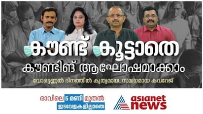 ലളിതവും വ്യക്തവുമായി വോട്ടെണ്ണല് അതിവേഗം ജനങ്ങളിലേക്ക് എത്തിക്കാന് ASIANETNEWS.COM ഉം തയ്യാറാണ്. ഓരോ സ്പന്ദനങ്ങളും അപ്പപ്പോൾ അറിയിക്കാൻ ലൈവ് ബ്ലോഗും ഇന്ഫോഗ്രാഫിക്സ് അടക്കമുള്ള സംവിധാനങ്ങളും ഒരുക്കിയിട്ടുണ്ട്. മുന്നണികളുടേയും മുഴുവൻ മണ്ഡലങ്ങളിലെയും ലീഡുനിലയും ഫലങ്ങളും ഇതിലൂടെ എളുപ്പത്തില് അറിയാം.