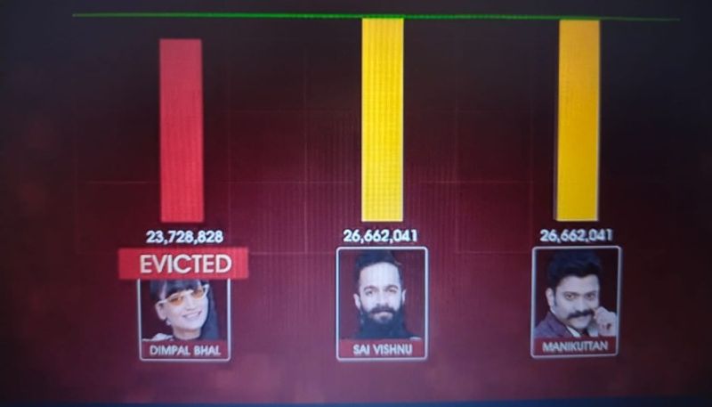ബിഗ് ബോസ് സീസൺ മൂന്നിന്റെ മൂന്നാം സ്ഥാനം സ്വന്തമാക്കിയത് ഡിംപൽ ഭാൽ ആണ്. ഈ സീസണിൽ ഏറ്റവും കൂടുതൽ ജനപ്രീതി നേടിയ മത്സരാർത്ഥി കൂടിയാണ് ഡിംപൽ. 23, 728,828 വോട്ടുകളാണ് ഡിംപൽ നേടിയത്.