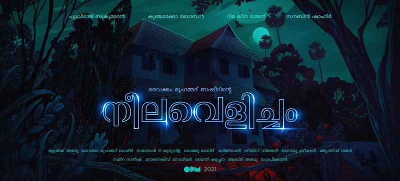 "സ്നേഹം നിറഞ്ഞവരേ, നിറത്തിന്മേൽ നിറവും വെളിച്ചത്തിന്മേൽ വെളിച്ചവും ഉപയോഗിച്ച്, ബഷീറിന്റെ 'നീലവെളിച്ചം' സിനിമയാക്കണമെന്നത് ഏറെ കാലമായുള്ള കൊതിയായിരുന്നു. എല്ലാം ഒത്തുവന്നത് ഇപ്പോഴാണ്. അക്ഷരസുൽത്താന്റെ നൂറ്റിപതിമൂന്നാം ജന്മദിനത്തിൽ ഈ വാർത്ത നിങ്ങളുമായി പങ്കുവെക്കാൻ ഏറെ അഭിമാനവും സന്തോഷവും ഉണ്ട്. ബഷീറിന്റെ കുടുംബങ്ങൾക്കും ശ്രീ ഗുഡ്നൈറ്റ് മോഹനും ഹൃദയത്തിൽ നിന്നും നന്ദി. നീലവെളിച്ചം ഈ വർഷാവസാനം ചിത്രീകരണം ആരംഭിക്കും", ആഷിക് അബു അറിയിക്കുന്നു. ഷൈജു ഖാലിദ് ഛായാഗ്രഹണം നിര്വ്വഹിക്കുന്ന ചിത്രത്തിന്റെ സംഗീത വിഭാഗം കൈകാര്യം ചെയ്യുന്നത് ബിജിബാലും റെക്സ് വിജയനും ചേര്ന്നാണ്.