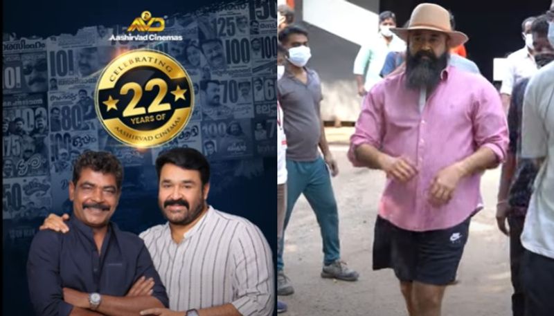 മലയാളത്തിലെ മുന്നിര ബാനറുകളില് ഒന്നാണ് ആന്റണി പെരുമ്പാവൂരിന്റെ ആശിര്വാദ് സിനിമാസ് (Aashirvad Cinemas). മലയാള സിനിമയിൽ ഒഴിച്ചു കൂടാനാകാത്ത നിർമ്മാണ കമ്പനിയായി ആശിർവാദ് സിനിമാസ് മാറിയത് ചുരുങ്ങിയ കാലം കൊണ്ടായിരുന്നു. ഇന്നിതാ ഇരുപത്തിരണ്ടിന്റെ നിറവിൽ നിൽക്കുകയാണ് ബാനർ. ഈ അവസരത്തിൽ മോഹൻലാലിനൊപ്പം കേക്ക് മുറിച്ച് ആഘോഷിക്കുകയാണ് അധികൃതർ.