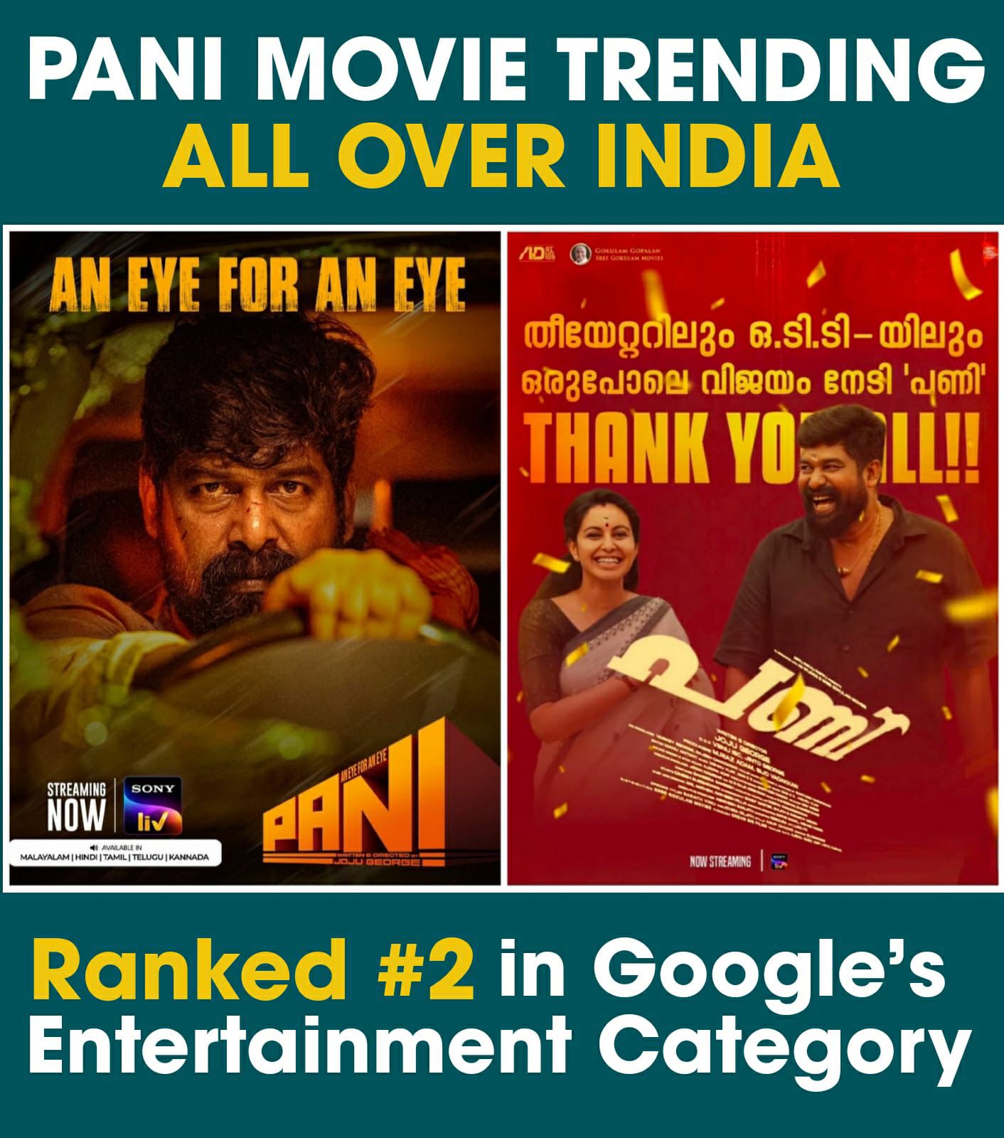 മലയാള ചലച്ചിത്ര താരം ജോജു ജോർജ് ആദ്യമായി സംവിധാനം ചെയ്ത പണിയ്ക്ക് ഒടിടിയിലും മികച്ച പ്രതികരണം. മലയാളികൾക്ക് പുറമെ ഇതര ഭാഷക്കാരും സിനിമയെ പ്രശംസിച്ച് രംഗത്തെത്തുന്നുണ്ട്. ചിത്രം ഗൂഗിളിന്റെ ഓൾ ഇന്ത്യ എന്റർടൈൻമെന്റ് കാറ്റഗറിയിൽ രണ്ടാം സ്ഥാനത്താണ് ഇപ്പോഴുള്ളത്. ജോജു ജോര്ജ് രചനയും നിർവഹിച്ച ചിത്രം പ്രതികാരവും പകയും ചേർത്തുരുക്കിയ ആക്ഷൻ ത്രില്ലറായാണ് ഒരുങ്ങിയത്.