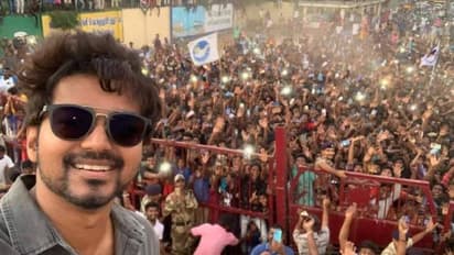 കാരവന് മുകളില് കയറിനിന്ന് അവര്ക്കുനേരെ കൈവീശിയ വിജയ് സെല്ഫി പകര്ത്തുകയായിരുന്നു. ഇതോടെ ചിത്രം സോഷ്യല് മീഡിയയില് വൈറലായി. നടന് സണ്ണി വെയ്ന് അടക്കം നിരവധി പേരാണ് ചിത്രം ഇതിനോടകം തന്നെ പങ്കുവച്ചത്.