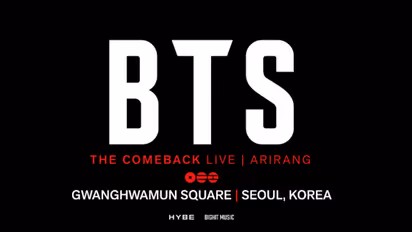ബിടിഎസ് ദി കംബാക്ക് | അരിരംഗ് മാർച്ച് 21-ന് കൊറിയൻ സമയം രാത്രി 8 മണിക്ക് സ്ട്രീം ചെയ്യും. ഇന്ത്യൻ സമയം ഏകദേശം വൈകുന്നേരം 4:30-ന് ഇത് കാണാൻ സാധിക്കുമെന്നാണ് റിപ്പോർട്ട്.
