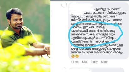 'പാതിരാത്രി തെണ്ടി തിരിഞ്ഞു നടക്കണ സകല അവളുമാരും എവിടേലും കുഴി ചെന്ന് വീഴും' എന്ന കമന്റിന് കൊള്ളേണ്ടിടത്ത് കൊള്ളും എന്നാണ് സംവിധായകന്റെ മറുപടി. ഇതുപോലെയുള്ള ചിത്രങ്ങളെ പിന്തുണക്കരുതെന്നും കമന്റില് പറയുന്നു. അവാര്ഡ് കിട്ടിയ പോലെയുണ്ട് എന്ന് കുറിച്ചുകൊണ്ടാണ് കമന്റ് ഉള്പ്പെടെയുള്ള ചിത്രം സംവിധായകന് ഫേസ്ബുക്ക് അക്കൗണ്ടിലൂടെ പങ്കുവെച്ചത്. സംവിധായകന്റെ മറുപടിക്ക് താഴെ പ്രതികരണങ്ങളുമായി സോഷ്യല് മീഡിയ ഉപയോക്താക്കളും സജീവമായിരിക്കുകയാണ്.