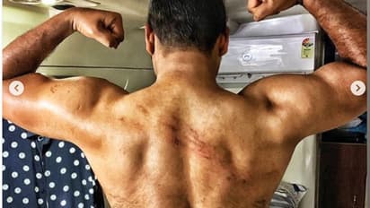 തന്റെ ശരീരത്തിന്റെ ചിത്രങ്ങള്ക്കൊപ്പം സിനിമയിലെ വടംവലി ചിത്രീകരണത്തില് പങ്കെടുത്തതിന്റെയും അതില്നിന്ന് ലഭിച്ച മുറിവുകളുടെയും ചിത്രങ്ങളും ചാക്കോച്ചന് പങ്കുവച്ചിട്ടുണ്ട്. കഴിഞ്ഞ രണ്ട് രാത്രികളിലായി കഠിനമായ ചിത്രീകരണമായിരുന്നുവെന്നും ചാക്കോച്ചന് പറയുന്നു.