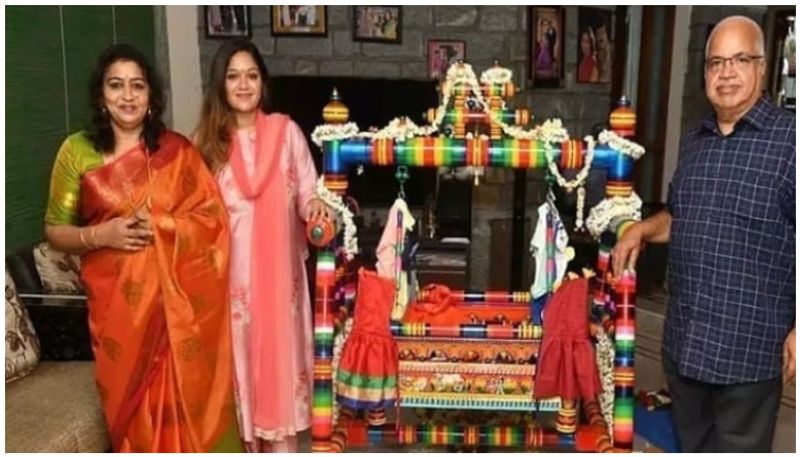 കര്ണ്ണാടകയിലെ ധരാവാഡ് ജില്ലയില് നിന്നുള്ള ശില്പ്പികളാണ് തൊട്ടില് തയ്യാറാക്കിയത്. പ്രത്യേകമായി രൂപകല്പന ചെയ്ത തൊട്ടിലാണ് ഇത്. ശ്രീകൃഷ്ണന്റെ ജീവിതത്തിലെ ദൈവീകമായ സവിശേഷതകള് ഉള്ക്കൊള്ളിച്ചതാണ് തൊട്ടില്. തൊട്ടിലില് കിടന്ന് ചിരിക്കുന്ന കുഞ്ഞിന്റെ ഫോട്ടോ ആരാധകര് ഏറ്റെടുത്തിരിക്കുകയാണ്. മേഘ്നയും കുടുംബാംഗങ്ങളും സന്തോഷത്തോടെ കുഞ്ഞിന് അടുത്ത് നില്ക്കുന്നു. കുഞ്ഞിന്റെ പേരിടല് ചടങ്ങും ഗംഭീരമാക്കാനാണ് കുടുംബാംഗങ്ങള് ആലോചിക്കുന്നത്.