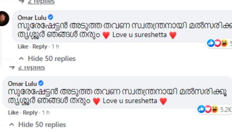 സുരേഷ് ഗോപിയോട് സ്വതന്ത്രനായി മത്സരിക്കാന് ആവശ്യപ്പെട്ട് സംവിധായകന് ഒമര് ലുലു. നിയമസഭാ തെരഞ്ഞെടുപ്പിന് പിന്നാലെ വോട്ടര്മാര്ക്ക് നന്ദി അറിയിച്ചുകൊണ്ടുള്ള സുരേഷ് ഗോപിയുടെ പോസ്റ്റിന് താഴെയാണ് ഒമറിന്റെ കമന്റ്.