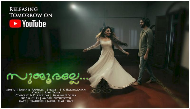 'സുജൂദല്ലേ എന്നാണ്' മ്യൂസിക് വീഡിയോയ്ക്ക് പേരിട്ടിരിക്കുന്നത്. റിമി ടോമി തന്നെ വീഡിയോയില് അഭിനയിക്കുന്നു. പ്രദീഷാണ് റിമി ടോമിക്കൊപ്പം ഉണ്ടാകുക .ബി കെ ഹരിനാരായണനാണ് ഗാനരചന നിര്വഹിക്കുന്നത്. ഷാരോണ് കെ വിപിനാണ് കണ്സെപ്റ്റും സംവിധാനവും. റോണി റാഫേല് സംഗീത സംവിധാനം നിര്വഹിക്കുന്നു.