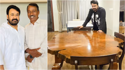 തൃശൂർ: 600വർഷം പഴക്കമുള്ള തേക്ക് മരം കൊണ്ട് നിർമ്മിച്ച മേശ നടൻ മോഹൻലാലിന് സമ്മാനിച്ച് ചേർപ്പ് പെരുമ്പിള്ളിശേരി സ്വദേശി എ.എ. കുമാരൻ. തന്റെ ഉടമസ്ഥതയിലുള്ള സാജ് ടിമ്പേഴ്സിന്റെ 75 -ാം വാർഷിക സമ്മാനമായിട്ടാണ് കുമാരൻ മേശ മോഹൻലാലിന് നിർമ്മിച്ച് നൽകിയത്. കൊച്ചിയിലെ മോഹൻലാലിൻ്റെ വീട്ടിലെ അടുക്കളയിൽ പഴമയുടെ കൗതുകത്തിൽ മേശ നിലനിൽക്കും. കുമളി തോപ്രാംകുടിയിലെ സർക്കാർ കൂപ്പിൽ നിന്ന് ലേലം ചെയ്തെടുത്ത തടി പ്രമുഖ വ്യവസായി എം.എ. യൂസഫലി പുതുതായി പണിയുന്ന വീടിനു വേണ്ടി ഉപയോഗിച്ചിരുന്നു.