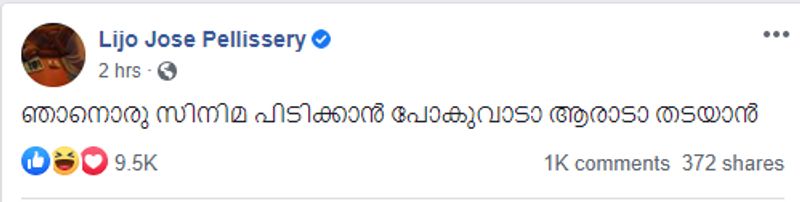 കൊച്ചി: പുതിയ സിനിമകളുടെ ഷൂട്ടിംഗ് തുടങ്ങുന്നതിനെതിരെ നിര്മ്മാതാക്കളുടെ സംഘടന രംഗത്തെത്തിയതില് രൂക്ഷ പ്രതികരണവുമായി സംവിധായന് ലിജോ ജോസ് പെല്ലിശ്ശേരി. 'ഞാനൊരു സിനിമ പിടിക്കാൻ പോകുവാടാ ആരാടാ തടയാൻ' എന്നാണ് ലിജോയുടെ ഫേസ്ബുക്ക് പോസ്റ്റ്. കൊവിഡ് കാലത്ത് മുടങ്ങിയ ചിത്രങ്ങൾ പൂർത്തിയാക്കാതെ പുതിയ സിനിമകളുടെ ചിത്രീകരണം തുടങ്ങരുതെന്ന് നിർമ്മാക്കളുടെ സംഘടന ആവശ്യപ്പെട്ടിരുന്നു.