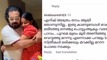 "എനിക്ക് അത്രം രസമായി തോന്നുന്നില്ല.. ഇതു കാണുമ്പോള് വേറെ ഒരിടത്തു നെഞ്ചുപൊട്ടുമാകും. വരദ പാവം. പുറമെ മുഖം മൂടി അണിഞ്ഞ് വെറുത്തു, മറന്നു എന്നൊക്കെ പറയും. പക്ഷേ സ്ത്രീകള് ഒരിക്കലും മറക്കില്ല. മറന്ന പോലെ നടക്കും", എന്നായിരുന്നു കമന്റ്.