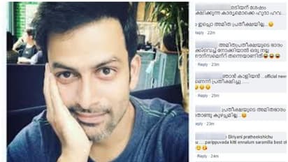 പൃഥ്വിരാജ് ആരാധകര്ക്കായി ഒരു സര്പ്രൈസ് അനൗണ്സ്മെന്റ് കാത്തിരിപ്പുണ്ടെന്ന് ഫേസ്ബുക്ക് ലൈവിലൂടെ രാവിലെ അറിയിച്ചിരുന്നു. തന്റെ ഒഫീഷ്യല് ഫേസ്ബുക്ക് പേജിലൂടെയാണ് സര്പ്രൈസ് അനൗണ്സ്മെന്റ് പൃഥ്വി നടത്തിയത്.