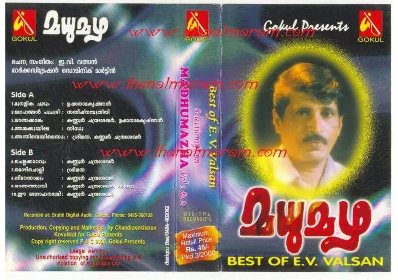 ആല്ബം എന്നൊരു ഗാനസങ്കേതത്തെ മലയാളികള് പരിചയപ്പെടുന്നതിനും മുമ്പ്. കേള്വിയുടെ ആഴത്തെ വെറും കാഴ്ചകള് കീഴടക്കുന്നതിനും മുമ്പ്. നാട്ടിലെ ഓഡിയോ കാസറ്റു കടകളായ കടകളൊക്കെ മൊബൈല് ഷോപ്പുകളായി വേഷം മാറുന്നതിനുമൊക്കെ ഏറെ മുമ്പ്. തൊണ്ണൂറുകളുടെ രണ്ടാം പകുതിയില് 'മധുമഴ' എന്ന പേരില് പത്തോളം പാട്ടുകളുമായി ഒരു കാസറ്റിറങ്ങി. വടകരക്കാരനായ ഇ വി വത്സന് എന്ന അധ്യാപകന് പലപല കാലങ്ങളിലായി എഴുതി ഈണമിട്ട ചില നാടകഗാനങ്ങളും ലളിത ഗാനങ്ങളുമായിരുന്നു അവ.