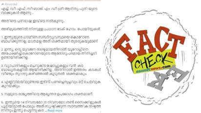 Fact Check, സോഷ്യൽ മീഡിയയിലും വാട്സ്ആപ്പിലും വേഗത്തിൽ പ്രചരിക്കുന്ന തെറ്റായ വിവരങ്ങൾ, വ്യാജ വാർത്തകൾ, തെറ്റിദ്ധരിപ്പിക്കുന്ന പോസ്റ്റുകൾ തുടങ്ങിയവയുടെ പിന്നിലെ സത്യങ്ങൾ പരിശോധിച്ച് പ്രേക്ഷകർക്ക് യഥാർത്ഥ വസ്തുതകൾ Asianet News Malayalam ത്തിലൂടെ എത്തിക്കുന്നതാണ് ഇതിന്റെലക്ഷ്യം.
