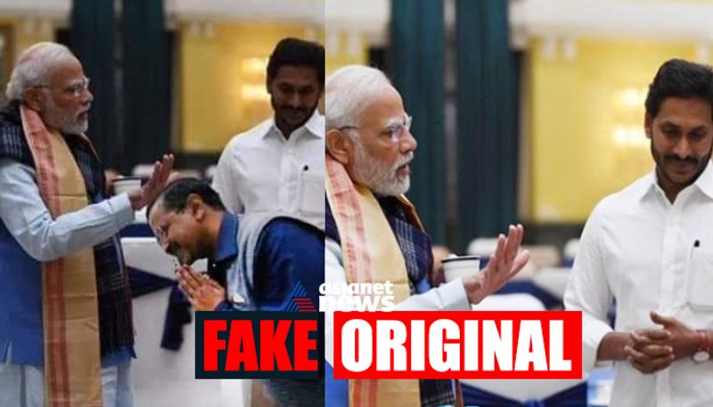 എന്നാല് വി എം സുധീരന് അടക്കമുള്ളവര് പങ്കുവെച്ച ചിത്രത്തിന്റെ ഒറിജിനലില് അരവിന്ദ് കെജ്രിവാള് ഇല്ല എന്നതാണ് സത്യം. പ്രധാനമന്ത്രി നരേന്ദ്ര മോദിയും പശ്ചിമ ബംഗാള് മുഖ്യമന്ത്രി മമതാ ബാനര്ജിയും ആന്ധ്രാപ്രദേശ് മുഖ്യമന്ത്രി വൈ എസ് ജഗന് മോഹന് റെഡ്ഡിയുമാണ് ചിത്രത്തിലുള്ളവര്. ഇതില് നിന്ന് മമതാ ബാനര്ജിയുടെ ചിത്രം വെട്ടി മാറ്റി പകരം കെജ്രിവാളിന്റെ ഫോട്ടോ എഡിറ്റ് ചെയ്ത് ചേര്ക്കുകയായിരുന്നു. ഒറിജിനല് ചിത്രം ഡിസംബര് ആറിന് വാര്ത്താ ഏജന്സിയായ എഎന്ഐയെ ഉദ്ധരിച്ച് 'ദ് പ്രിന്റ്' പ്രസിദ്ധീകരിച്ചിട്ടുണ്ട്.