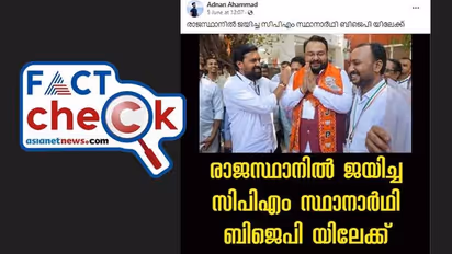'രാജസ്ഥാനില് ജയിച്ച സിപിഎം സ്ഥാനാര്ഥി ബിജെപിയിലേക്ക്' എന്നാണ് ചിത്രം സഹിതം വിവിധ ഫേസ്ബുക്ക് പോസ്റ്റുകളിലുള്ളത്. ബിജെപി ഷാള് അണിഞ്ഞ് നില്ക്കുന്ന ഒരാളുടെ ചിത്രം കുറിപ്പുകള്ക്കൊപ്പം സോഷ്യല് മീഡിയ പോസ്റ്റുകളില് കാണാം.
