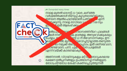 Fact Check, സോഷ്യൽ മീഡിയയിലും വാട്സ്ആപ്പിലും വേഗത്തിൽ പ്രചരിക്കുന്ന തെറ്റായ വിവരങ്ങൾ, വ്യാജ വാർത്തകൾ, തെറ്റിദ്ധരിപ്പിക്കുന്ന പോസ്റ്റുകൾ തുടങ്ങിയവയുടെ പിന്നിലെ സത്യങ്ങൾ പരിശോധിച്ച് പ്രേക്ഷകർക്ക് യഥാർത്ഥ വസ്തുതകൾ Asianet News Malayalam ത്തിലൂടെ എത്തിക്കുന്നതാണ് ഇതിന്റെലക്ഷ്യം.