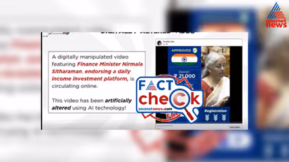 ദില്ലി: ചെറിയ തുക നിക്ഷേപിച്ചാല് പതിന്മടങ്ങ് തിരികെ ലഭിക്കുമെന്ന തരത്തിലുള്ള മോഹവാഗ്ദാനങ്ങള് നാം പലതും ഓണ്ലൈന് ലോകത്ത് കണ്ടിട്ടുണ്ട്. കേന്ദ്ര ധനകാര്യ മന്ത്രി നിര്മ്മലാ സീതാരാമന് ഇത്തരത്തില് ഒരു പ്രഖ്യാപനം നടത്തിയോ? ഒരു ഓണ്ലൈന് പ്ലാറ്റ്ഫോമില് 21,000 രൂപ നിങ്ങള് നിക്ഷേപിച്ചാല് മാസം 12 ലക്ഷം രൂപ വരെ റിട്ടേണ് നേടാം എന്നാണ് ധനമന്ത്രിയുടേതായി പ്രചരിക്കുന്ന വീഡിയോയില് പറയുന്നത്. ഞെട്ടിക്കുന്ന ഇത്തരമൊരു പ്രഖ്യാപനമോ പ്രൊമോഷനോ നടത്തിയോ കേന്ദ്ര ധനമന്ത്രി നിര്മ്മലാ സീതാരാമന്. വസ്തുത അറിയാം.