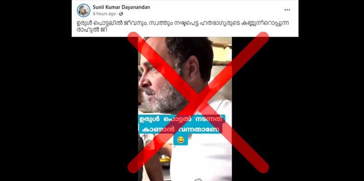 'ഉരുൾപൊട്ടലിൽ ജീവനും സ്വത്തും നഷ്ടപെട്ട ഹതഭാഗ്യരുടെ കണ്ണുനീരൊപ്പുന്ന രാഹുൽ ജി' എന്ന കുറിപ്പോടെയാണ് 47 സെക്കന്ഡ് ദൈര്ഘ്യമുള്ള വീഡിയോ നിരവധിയാളുകള് ഫേസ്ബുക്കില് പോസ്റ്റ് ചെയ്തിരിക്കുന്നത്. 'ഉരുള്പൊട്ടല് നടന്നത് കാണാന് വന്നതാണേ' എന്ന ഗ്രാഫിക്സ് എഴുത്ത് വീഡിയോയിലും കാണാം. രാഹുല് ഗാന്ധി ഒരു റസ്റ്റോറന്റില് പ്രവേശിക്കുന്നതും അവിടെയുള്ള തൊഴിലാളികളെ പരിചയപ്പെടുന്നതും കുശലം പങ്കിടുന്നതുമാണ് വീഡിയോയിലുള്ളത്. ഈ വീഡിയോ മുണ്ടക്കൈ ഉരുള്പൊട്ടല് ദുരന്തം സംഭവിച്ചതിന് ശേഷമുള്ള രാഹുലിന്റെ വയനാട് സന്ദര്ശനത്തില് നിന്നുള്ളതോ എന്ന് പരിശോധിക്കാം.
