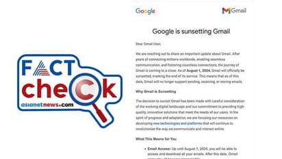 ഗൂഗിളിന്റെ ജനപ്രിയ ഇമെയില് സംവിധാനമായ ജിമെയിലിന് അസ്തമനമാവുകയാണോ? ജിമെയില് സേവനം 2024 ഓഗസ്റ്റ് 1ഓടെ പൂര്ണമായും അവസാനിപ്പിക്കുമെന്ന് ഗൂഗിള് അറിയിച്ചതായാണ് സ്ക്രീന്ഷോട്ട് സഹിതം സോഷ്യല് മീഡിയയിലെ പ്രചാരണം. എന്താണ് ഈ അറിയിപ്പിന്റെ വസ്തുത.