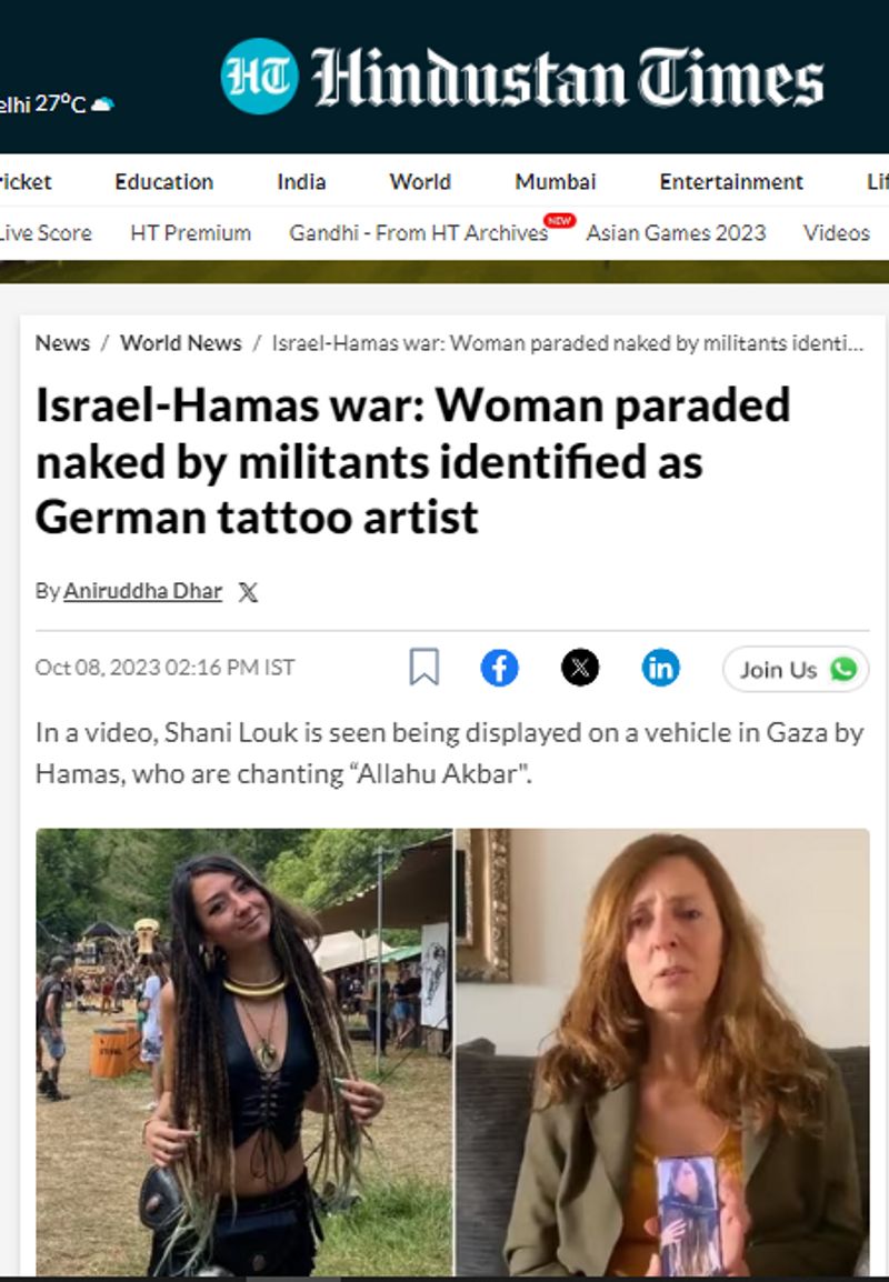 ട്രക്കിന് പിന്നിലിട്ട് ഒരു സ്ത്രീയുടെ അര്ധനഗ്ന ശരീരം ഹമാസ് കൊണ്ടുപോകുന്നതിന്റെ ദൃശ്യങ്ങള് ട്വിറ്റര് അടക്കമുള്ള സാമൂഹ്യമാധ്യമങ്ങളില് വൈറലായിരുന്നു. പിന്നാലെ പ്രധാനമാധ്യമങ്ങളെല്ലാം ഈ സംഭവം റിപ്പോര്ട്ട് ചെയ്യുകയും ചെയ്തു. വീഡിയോ വൈറലായതും ദൃശ്യത്തില് കാണുന്ന സ്ത്രീ ജര്മന് ടാറ്റൂ ആര്ട്ടിസ്റ്റായ തന്റെ മകള് ഷാനി ലോക് ആണെന്ന് അവകാശപ്പെട്ട് ഒരു വനിത രംഗത്തെത്തിയിരുന്നു. വീഡിയോയില് കാണുന്ന സ്ത്രീയുടെ ശരീരത്തിലെ ടാറ്റുകള് കണ്ടാണ് മാതാവ് ഇത് തന്റെ മകള് ആണെന്ന് തിരിച്ചറിഞ്ഞത്. ഇക്കാര്യം ദേശീയ മാധ്യമമായ ഹിന്ദുസ്ഥാന് ടൈംസ് റിപ്പോര്ട്ട് ചെയ്തിരുന്നു. ഗാസ അതിര്ത്തിയിലെ മ്യൂസിക് ഫെസ്റ്റിവലില് വച്ചാണ് ഷാനി ആക്രമണത്തിന് ഇരയായത് എന്ന് റിപ്പോര്ട്ടില് പറയുന്നു. അതിനാല് തന്നെ വീഡിയോയിലുള്ളത് ഇസ്രയേലി സൈനികയല്ല, ഒരു ജര്മന് ടാറ്റൂ ആര്ട്ടിസ്റ്റാണെന്ന് മാധ്യമ വാര്ത്തകള് വച്ച് മനസിലാക്കാം.