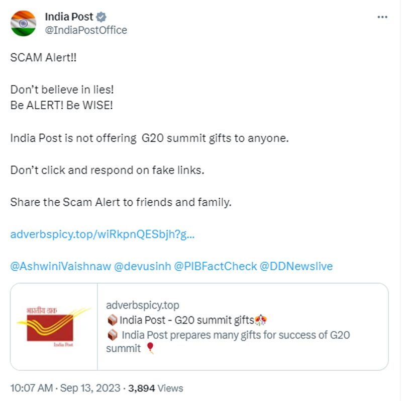 ഇന്ത്യാ പോസ്റ്റിന്റെ പേരില് പ്രചരിക്കുന്ന സന്ദേശം തട്ടിപ്പാണ് എന്ന് എല്ലാവരും മനസിലാക്കുക. ആരും ലിങ്കില് ക്ലിക്ക് ചെയ്ത് വഞ്ചിതരാവരുത്. പ്രചരിക്കുന്ന സന്ദേശം വ്യാജമാണ് എന്ന് ഇന്ത്യാ പോസ്റ്റ് തന്നെ വ്യക്തമാക്കിയിട്ടുണ്ട്. 'വൈറല് സന്ദേശം വ്യാജമാണ് എന്നും ആരും അതിലുള്ള ലിങ്കില് ക്ലിക്ക് ചെയ്യരുത്' എന്നും ഇന്ത്യാ പോസ്റ്റ് സാമൂഹ്യമാധ്യമമായ എക്സിലൂടെ(ട്വിറ്റര്) അഭ്യര്ഥിച്ചു.