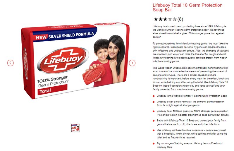 ലൈഫ്ബോയി സോപ്പിനെ കുറിച്ച് വെബ്സൈറ്റില് നല്കിയിരിക്കുന്നത്
