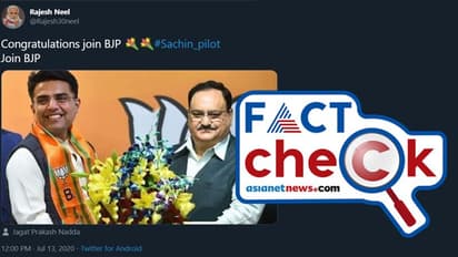 കോണ്ഗ്രസ് നേതാവ് സച്ചിന് പൈലറ്റ് ബിജെപിയില് ചേര്ന്നതായി ചിത്രം സഹിതം നടക്കുന്ന പ്രചാരണം വ്യാജമാണ്