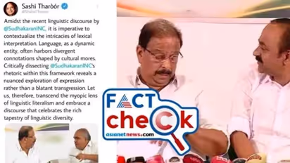 വാർത്താസമ്മേളനത്തില് പ്രതിപക്ഷ നേതാവ് വി ഡി സതീശന് വൈകി എത്തിയതിനെതിരെ കെപിസിസി പ്രസിഡന്റ് കെ സുധാകരന് ക്ഷോഭിച്ചതും അസഭ്യപ്രയോഗം നടത്തിയതും വിവാദമായിരിക്കുകയാണ്. ഈ സാഹചര്യത്തില് കെ സുധാകരന്റെ പരാമര്ശത്തെ വിമര്ശിച്ച് എംപിയും കോണ്ഗ്രസ് നേതാവുമായ ശശി തരൂര് സാമൂഹ്യമാധ്യമമായ എക്സില് (പഴയ ട്വിറ്റര്) രംഗത്തെത്തിയോ? തരൂര് കടിച്ചാല് പൊട്ടാത്ത ഇംഗ്ലീഷില് കെ സുധാകരനെ ട്വീറ്റിലൂടെ വിമര്ശിച്ചു എന്നാണ് സാമൂഹ്യമാധ്യമമായ ഫേസ്ബുക്കിലെ പ്രചാരണം. ഇതിന്റെ വസ്തുത എന്താണ് എന്ന് നോക്കാം.