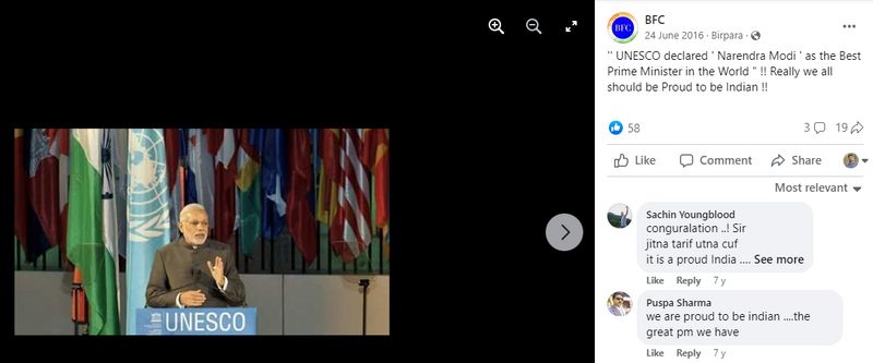 നരേന്ദ്ര മോദിയെ ലോകത്തിലെ ഏറ്റവും മികച്ച പ്രധാനമന്ത്രിയായി തെരഞ്ഞെടുത്തത് വെറും കിംവദന്തി മാത്രമാണ് എന്ന് യുനസ്കോ തന്നെ മുമ്പ് വ്യക്തമായിരുന്നു എന്നും കണ്ടെത്താനായി. മോദിയെയും യുനസ്കോയേയും സംബന്ധിച്ചുള്ള ഈ വ്യാജ പ്രചാരണം 2016ന് പിന്നാലെ 2017ലും വൈറലായതാണ്.