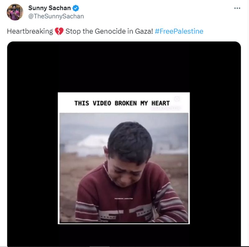 'ഹൃദയഭേദകം, ഗാസയിലെ വംശഹത്യ അവസാനിപ്പിക്കുക' എന്നുമുള്ള കുറിപ്പോടെയാണ് 37 സെക്കന്ഡ് ദൈര്ഘ്യമുള്ള വീഡിയോ സണ്ണി സച്ചന് എന്ന യൂസര് 2023 ഒക്ടോബര് 28-ാം തിയതി ട്വീറ്റ് ചെയ്തിരിക്കുന്നത്. ഫ്രീ പാലസ്തീന് എന്ന ഹാഷ്ടാഗും ട്വീറ്റില് കാണാം. പിതാവിന്റെ മൃതദേഹത്തിനരികെ പൊട്ടിക്കരയുന്ന ബാലന്റെ കണ്ണീര് കാഴ്ചകളാണ് ഈ വീഡിയോയിലുള്ളത്. ആരുടേയും നെഞ്ച് തകര്ക്കുന്ന ഈ ദൃശ്യം ഇതിനകം മൂന്ന് ലക്ഷത്തിലേറെ പേര് കണ്ടുകഴിഞ്ഞു. നിരവധിയാളുകളാണ് ഈ വീഡിയോയ്ക്ക് താഴെ ദുഖം രേഖപ്പെടുത്തി കമന്റ് ചെയ്തിരിക്കുന്നത്.