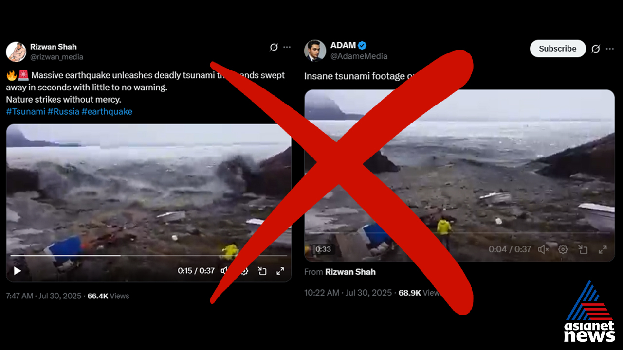 'റഷ്യയില് അതിശക്തമായ ഭൂകമ്പത്തെ തുടര്ന്നുണ്ടായ സുനാമി ആയിരക്കണക്കിന് മനുഷ്യരെ ഒഴുക്കിക്കൊണ്ടുപോയി', 'റഷ്യയിലെ സുനാമിയുടെ ഭീതിജനകമായ ദൃശ്യങ്ങള്'- എന്നിങ്ങനെയുള്ള തലക്കെട്ടുകളിലാണ് 37 സെക്കന്ഡ് ദൈര്ഘ്യമുള്ള വീഡിയോ എക്സ് യൂസര്മാര് പോസ്റ്റ് ചെയ്തിരിക്കുന്നത്. എക്സ് പോസ്റ്റുകളും സ്ക്രീന്ഷോട്ടുകളും ചുവടെ ചേര്ക്കുന്നു. കടല്ത്തീരത്ത് അതിശക്തമായ തിരമാലകള് ആഞ്ഞടിക്കുന്നതും ബോട്ടുകള് ഒഴുകിപ്പോകുന്നതും, രണ്ട് പേര് അവ സംരക്ഷിക്കാന് പാടുപെടുന്നതും വീഡിയോയില് കാണാം. എക്സ് യൂസര്മാര് അവകാശപ്പെടുന്നത് പോലെ ഈ വീഡിയോ റഷ്യയില് നിന്നുള്ളത് തന്നെയോ?