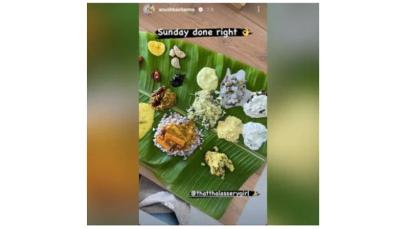 ഇപ്പോഴിതാ സൌത്ത് ഇന്ത്യന് ഭക്ഷണങ്ങളും തനിക്ക് ഇഷ്ടമാണെന്ന് ഓര്മ്മപ്പെടുത്തുകയാണ് അനുഷ്ക. ഞായറാഴ്ച കഴിച്ച നാടന് സദ്യയുടെ ചിത്രം ഇന്സ്റ്റഗ്രാം സ്റ്റോറിയിലൂടെ പങ്കുവച്ചാണ് താരം സദ്യയോടുള്ള ഇഷ്ടം പ്രകടിപ്പിച്ചത്. ഇലയില് ചോറും ഓലനും തോരനും പച്ചടിയും കിച്ചടിയും അവിയലും പരിപ്പുകറിയും സാമ്പാറും ഉപ്പേരിയും ചിപ്സും പപ്പടവുമൊക്കെ കാണാം.