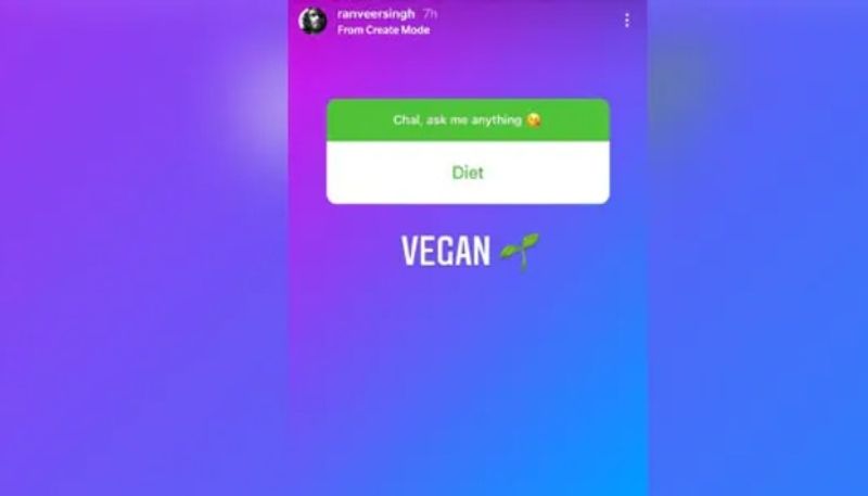 താന് വീഗനാണെന്നും രണ്വീര് ആരാധകന്റെ ചോദ്യത്തിനു മറുപടി നല്കിയിരുന്നു. എന്താണ് ഉച്ചയ്ക്ക് കഴിച്ചതെന്ന ചോദ്യത്തിന് ബിരിയാണിയുടെ ചിത്രവും അദ്ദേഹം പങ്കുവച്ചു.