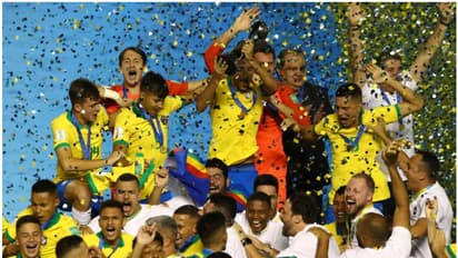 സാവോപോളോ: ഫിഫ അണ്ടർ 17 ലോകകപ്പിൽ ബ്രസീൽ കിരീടം സ്വന്തമാക്കി. കലാശപോരില് മെക്സിക്കോയെ ഒന്നിനെതിരെ രണ്ട് ഗോളിന് തോൽപിച്ചാണ് മഞ്ഞപ്പട കിരീടം നേടിയത്. ഇഞ്ചുറി ടൈമിൽ ലസാറോ വിനീഷ്യസ് മാർക്വേസ് നേടിയ ഗോളാണ് ബ്രസീലിനെ കീരിടത്തിലേക്ക് നയിച്ചത്. 66-ാം മിനിറ്റിൽ ബ്രയാൻ അലോൻസോയിലൂടെ മെക്സിക്കോയാണ് ആദ്യം ഗോൾ നേടിയത്.