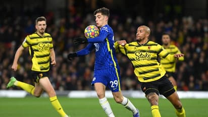 ലണ്ടന്: ഇംഗ്ലീഷ് പ്രീമിയർ ലീഗിൽ(EPL) ചെൽസിക്ക്(Chelsea Fc) ജയം. വാറ്റ്ഫോർഡിനെ(Watford) ഒന്നിനെതിരെ രണ്ട് ഗോളുകൾക്കാണ് ചെൽസി തോൽപ്പിച്ചത്. മാഷണ് മൗണ്ട്(Mason Mount), ഹക്കിം സിയേച്ച്(Hakim Ziyech) എന്നിവര് ചെൽസിക്ക് വേണ്ടി ഗോൾ നേടി. ഇമ്മാനുവൽ ബോണവെഞ്ച്വർ(Emmanuel Bonaventure) ആണ് വാറ്റ്ഫോർഡിനായി ഏക ഗോൾ നേടിയത്. പതിനാല് മത്സരത്തിൽ നിന്ന് 33 പോയിന്റുമായി ചെൽസിയാണ് തലപ്പത്ത്.