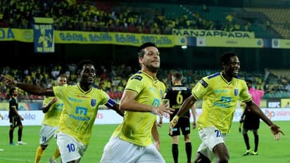മൂന്നാമത്തെ ഗോളിനും അധികം കാത്തിരിക്കേണ്ടിവന്നില്ല. ഹാളീചരൺ നർസാറിയുമായുള്ള നീക്കത്തിനൊടുവിൽ മെസി ബൗളി വല കുലുക്കി. ആദ്യപകുതി ആഘോഷത്തോടെ ബ്ലാസ്റ്റേഴ്സ് അവസാനിപ്പിച്ചു.