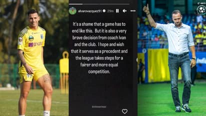 ബെംഗളൂരു: ഐഎസ്എല് നോക്കൗട്ടില് ബെംഗളൂരു എഫ്സി നായകന് സുനില് ഛേത്രിയുടെ വിവാദ ഗോളിന് പിന്നാലെ മൈതാനം വിട്ട കേരള ബ്ലാസ്റ്റേഴ്സ് പരിശീലകന് ഇവാന് വുകോമനോവിച്ചിന്റെ തീരുമാനത്തെ പ്രശംസിച്ച് എഫ്സി ഗോവ സൂപ്പർ താരം ആല്വാരോ വാസ്ക്വെസ്. 'ഒരു മത്സരം ഇങ്ങനെ അവസാനിച്ചത് നാണക്കേടാണ്. എന്നാല് കോച്ച് ഇവാന്റെയും ക്ലബിന്റേയും തീരുമാനം ധീരമായിരുന്നു. ഇനിയുള്ള കളികളില് എങ്കിലും കൂടുതല് നീതിയും തുല്യതയുമുള്ള മത്സരങ്ങള് ഉണ്ടാവുമെന്ന് പ്രതീക്ഷിക്കാം' എന്നുമാണ് മോശം റഫറീയിങ്ങനെ പരോക്ഷമായി വിമർശിച്ച് ഇന്സ്റ്റഗ്രാം സ്റ്റോറിയില് വാസ്ക്വെസ് കുറിച്ചത്.