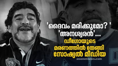 'ദൈവം മരിക്കുമോ? ' 'അനശ്വരൻ'... എന്നിങ്ങനെ പലതരത്തിലാണ് ആരാധകര് ഡീഗോയെ ഓര്ക്കുന്നത്. കേരളത്തില് ആദ്യമായി മലയാളി ലൈവ് കണ്ട ലോകകപ്പ് ഫുട്ബോള് ആയിരുന്നു 1986ലേത്. ആ ലോകകപ്പിലെ ഹീറോയായിരുന്നു ഡിയോഗോ മറഡോണ. അതിനാല് തന്നെ ആ കാലഘട്ടത്തിലെ ബാല, കൗമരങ്ങള് ഒരിക്കലും മറക്കാന് കഴിയാത്ത ആവശേത്തോടെയാണ് സോഷ്യല് മീഡിയയില് ഡീഗോയുടെ വിയോഗത്തില് പ്രതികരിക്കുന്നത്.