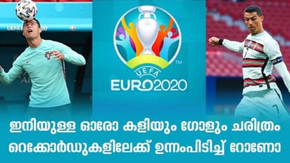 ഹംഗറിക്കെതിരെ ഇറങ്ങുമ്പോൾ റോണോയുടെ നേട്ടപ്പട്ടിക വീണ്ടും വലുതാകും. യൂറോയുടെ അഞ്ച് പതിപ്പിൽ പന്തുതട്ടിയ ഏക ഫുട്ബോളര് എന്ന നേട്ടം കീശയിലാകും. യൂറോ കപ്പിൽ 2004ൽ ഗ്രീസിനെതിരെയായിരുന്നു റൊണാൾഡോയുടെ ആദ്യ ഗോൾ. 36കാരൻ ഇതുവരെ കളിച്ചത് 56 യൂറോ മത്സരങ്ങൾ. മുന്നിലുള്ളത് 58 മത്സരം കളിച്ച ഇറ്റലിയുടെ ബഫൺ മാത്രം. ഇപ്പോൾ യൂറോയിൽ ഒമ്പത് ഗോളുമായി ഫ്രാൻസിന്റെ മിച്ചൽ പ്ലാറ്റിനിക്ക് ഒപ്പമാണ് ക്രിസ്റ്റ്യാനോ. ഇനിയുള്ള ഓരോ ഗോളും ചരിത്രമാണ്. യൂറോയിലും ലോക ഫുട്ബോളിലും.