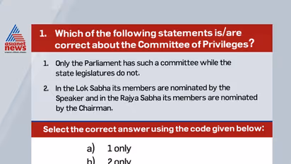 Statement 1 is not correct. The committee of Privileges is a standing committee constituted in each house of the Parliament/state legislature.