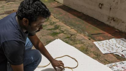 പേപ്പറിലും തറയിലും മതിലിലുമെല്ലാം വരച്ചു. ബ്രഷ് മാത്രമല്ല, കമ്പും, കല്ലും, കുപ്പിച്ചില്ലുമെല്ലാം tools ആക്കി. ഫസ്റ്റ്-ലുക്ക് ഡിസൈൻ റെഡി! ലിജോ ഉമ്മ വച്ചില്ലന്നെ ഉള്ളു.