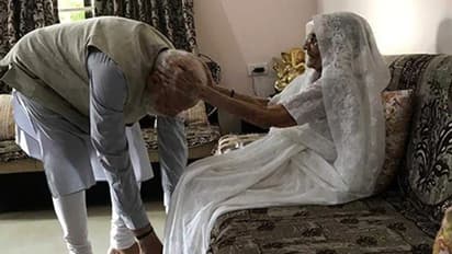 വോട്ട് ചെയ്യാനിറങ്ങുമ്പോള് അമ്മയുടെ അനുഗ്രഹം വാങ്ങുന്നു