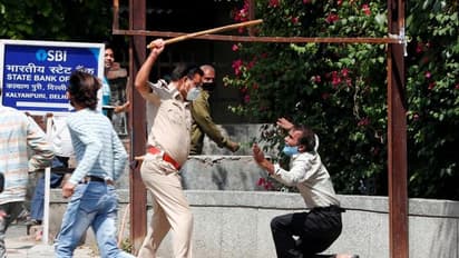 ലോക്ക്ഡൗൺ നിയമങ്ങൾ ലംഘിച്ചതിന് ഡൽഹിയിൽ പൊലീസ് ഉദ്യോഗസ്ഥർ ബാറ്റൺ പ്രയോഗിക്കുന്നു.