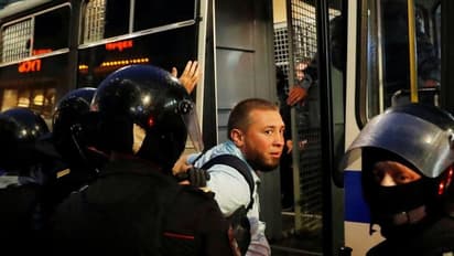 "എന്റെ ജീവിതം ജനങ്ങളെ സേവിക്കുന്നതിനാണെന്നാണ് ഞാൻ കരുതിയത്, പക്ഷേ ഇപ്പോൾ അത് അധികാര പിടിച്ചെടുക്കൽ മാത്രമാണെന്ന് ഞാൻ മനസ്സിലാക്കുന്നു" എന്നെഴുതിയ പ്ലക്കാർഡുമായി സെന്റ് പീറ്റേഴ്സ്ബർഗിൽ പ്രതിഷേധിക്കുന്ന യുവതി. പ്രശസ്ത സിനിമാ കഥാപാത്രമായ ജോക്കറിനോട് സാമ്യം തോന്നുന്ന രീതിയിലാണ് പ്ലക്കാർഡിൽ പുചിനെ ചിത്രീകരിച്ചിരിക്കുന്നത്