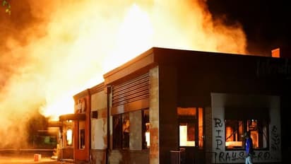 കറുത്തവർ​ഗ്​ഗക്കാരനായ റെയ്ഷാര്‍ഡ് ​ബ്രൂക്ക്സിനെ അമേരിക്കൻ പൊലീസ് വെടിച്ചുകൊന്നതിൽ പ്രതിഷേധിച്ച് പ്രകടനം നടത്തിയവർ അറ്റ്ലാന്റയിലെ ഭക്ഷണശാലയ്ക്ക് തീയിട്ടപ്പോൾ. ഈ ഭക്ഷണശാലയ്ക്ക് സമീപത്ത് വച്ചാണ് ബ്രൂക്ക്സ് കൊല്ലപ്പെട്ടത്.